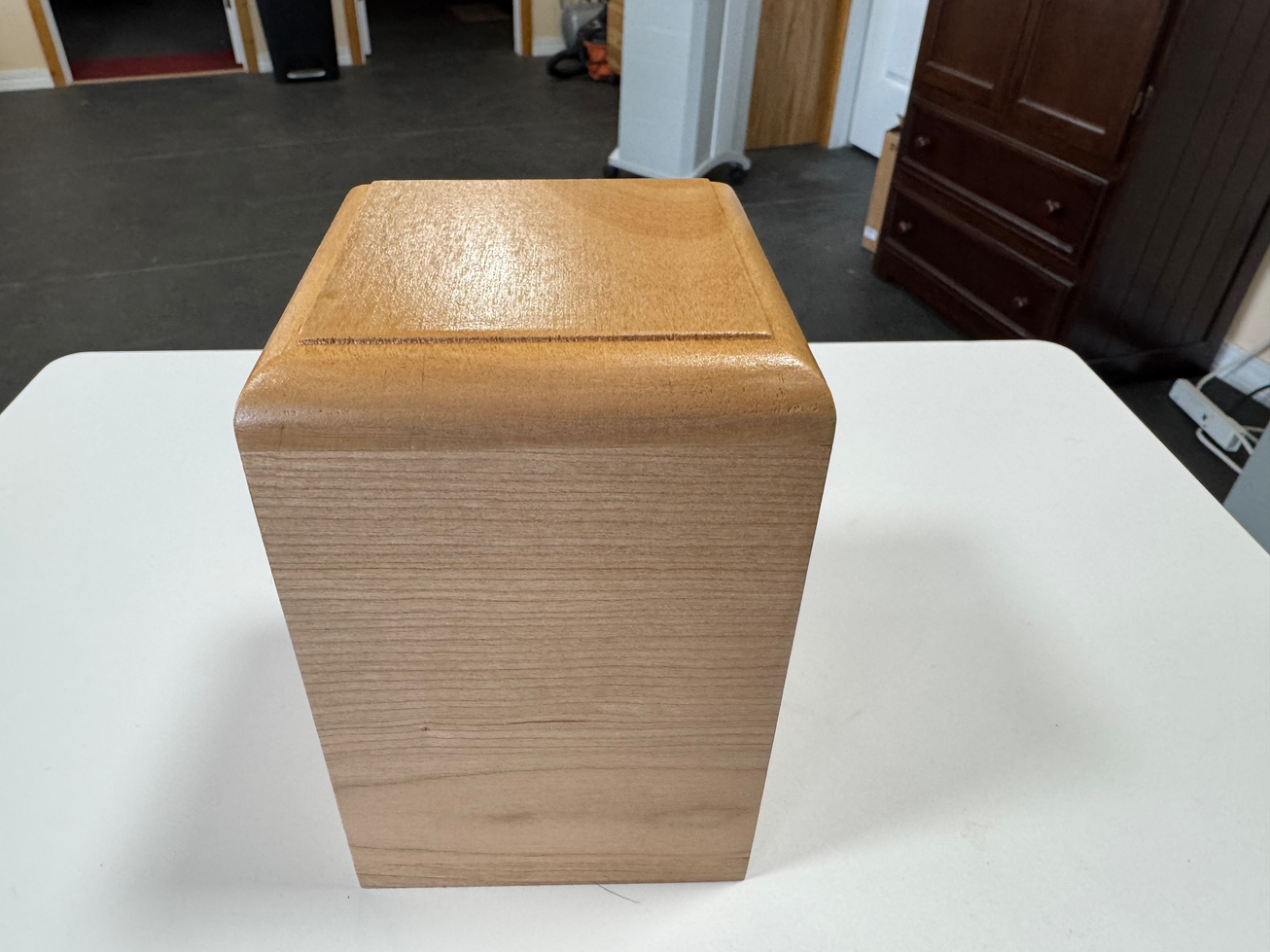 Each urn is built in our small workshop with careful joinery and a hand-rubbed finish that brings out the wood’s subtle grain and elegant character. Cherry’s smooth texture and naturally warm tones give this piece a comforting, dignified presence—perfect for a cherished companion.